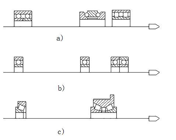 目前數(shù)控車(chē)方機(jī)床主軸軸承的配置形式主要有三種,如圖1所示。